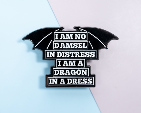 Feminist Enamel Black Lapel Dragon Pin, I Am No Damsel in Distress